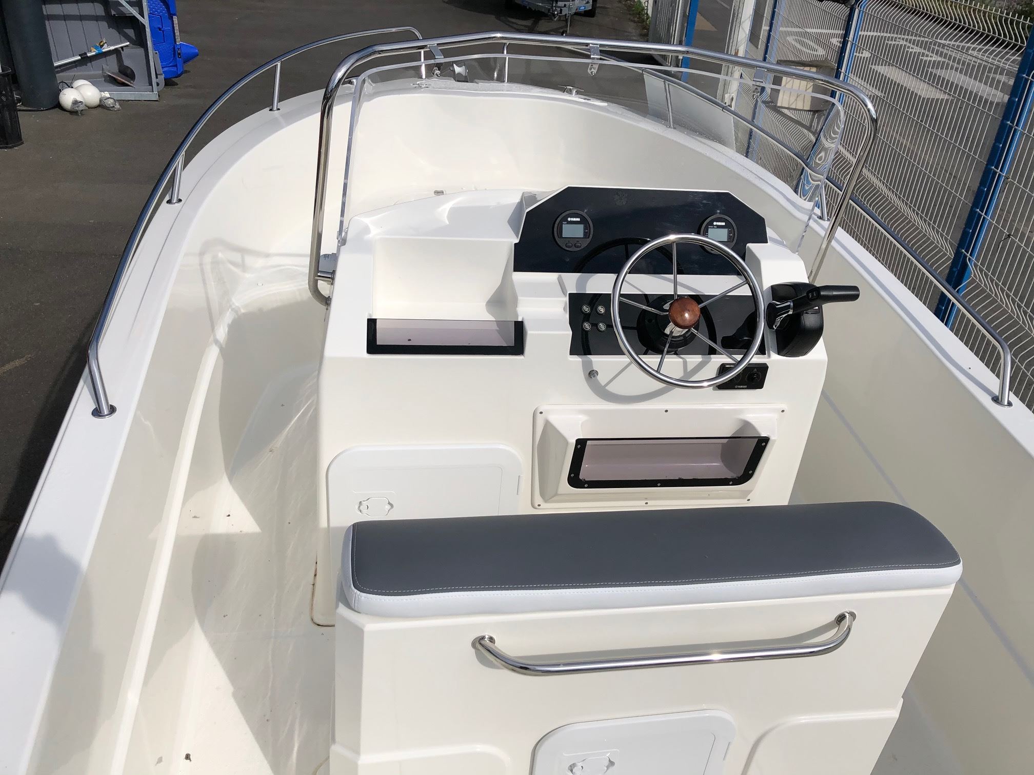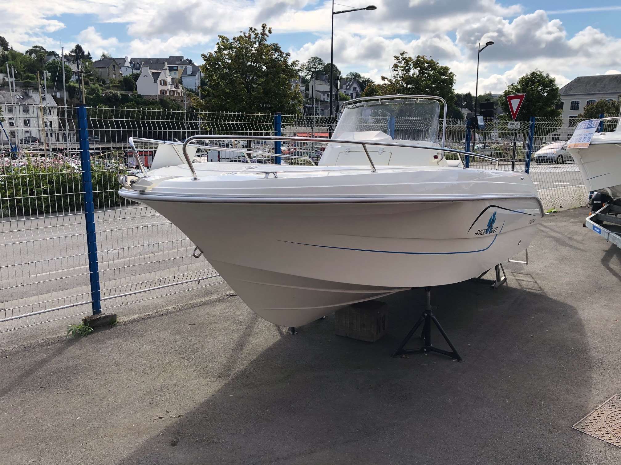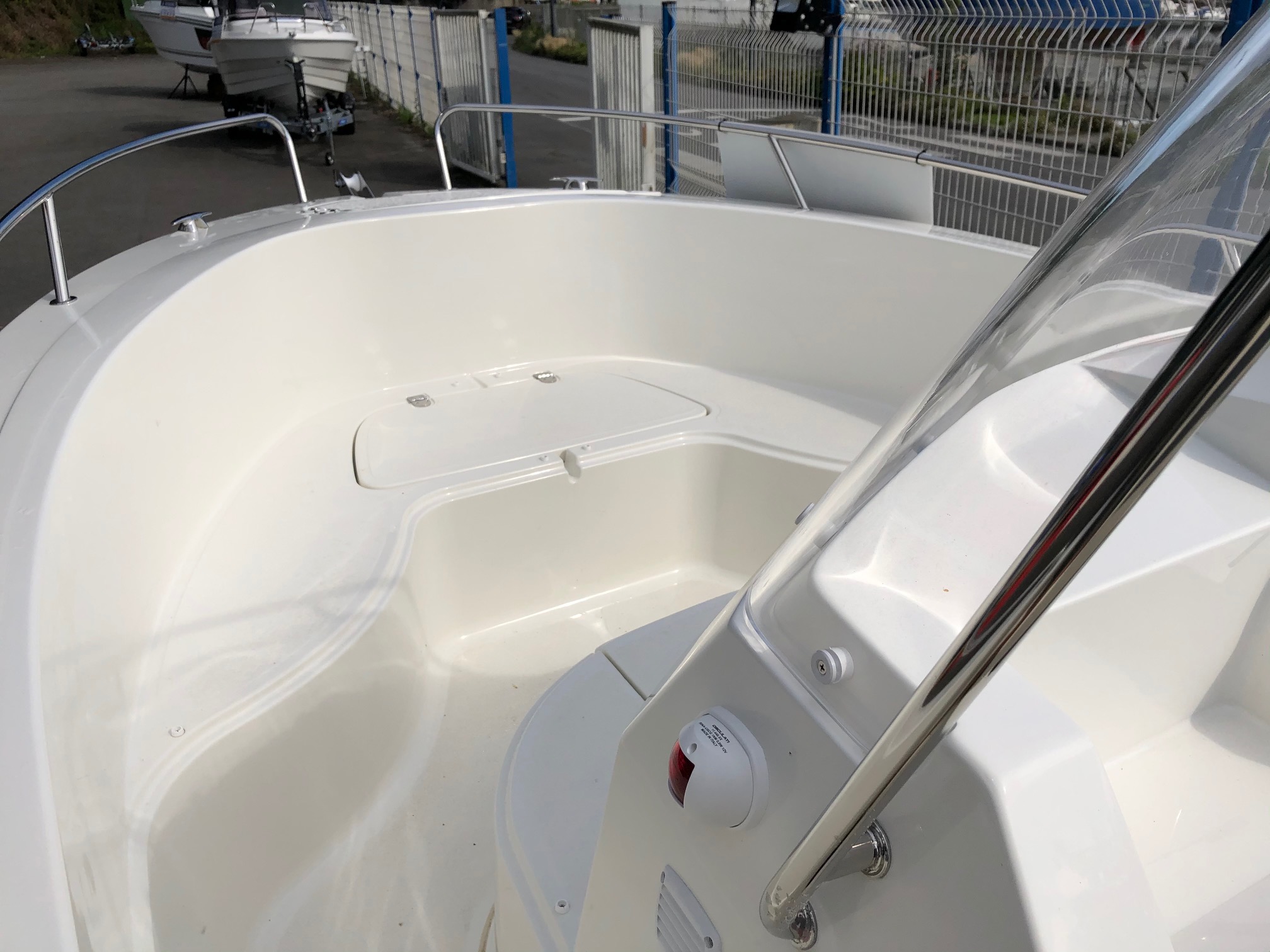 Prix Bateau + Moteur, hors préparation, hors transport, hors options. Sa carène au V marqué et à la proue tulipée associée à de très haut franc-bords génère une navigation des plus souples à l'abri des embruns. L'espace de pont est idéal et dispose d'un raffinement sans égal : leaning post de pilotage ou deux sièges et bain de soleil en version Trendy, une vaste console, de nombreux coffres, une grande baille à mouillage et un accastillage de qualité.Caractéristiques