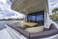A l’extérieur, la PRESTIGE 460 adopte la signature des dernières PRESTIGE et arbore les immenses vitrages de coque continus et agrandis.Ce Flybridge intègre le concept de cockpit en L qui permet une utilisation maximale de l’espace. Transformable en un très large bain de soleil arrière, ce cockpit peut également intégrer une cabine skipper équipée. L’aménagement contemporain de cuisine extérieure sur l’arrière ouvre sur une immense plateforme. Le Flybridge, très confortable, invite à une détente totale. A bord, tout est optimisé pour offrir un confort et un espace inégalés. Alliant le design du cabinet Garroni Design et signé JP Concepts, ce Flybridge répond aux toutes dernières exigences de la marque et bénéficie de l’ADN des Prestige Yachts.Caractéristiques